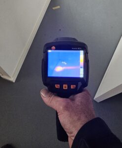 Bij thermografie maken we gebruik van een warmtebeeld camera. Als een warm water leiding lekt kunnen we dit nauwkeurig aantonen, ook als de leiding volledig weggewerkt is.